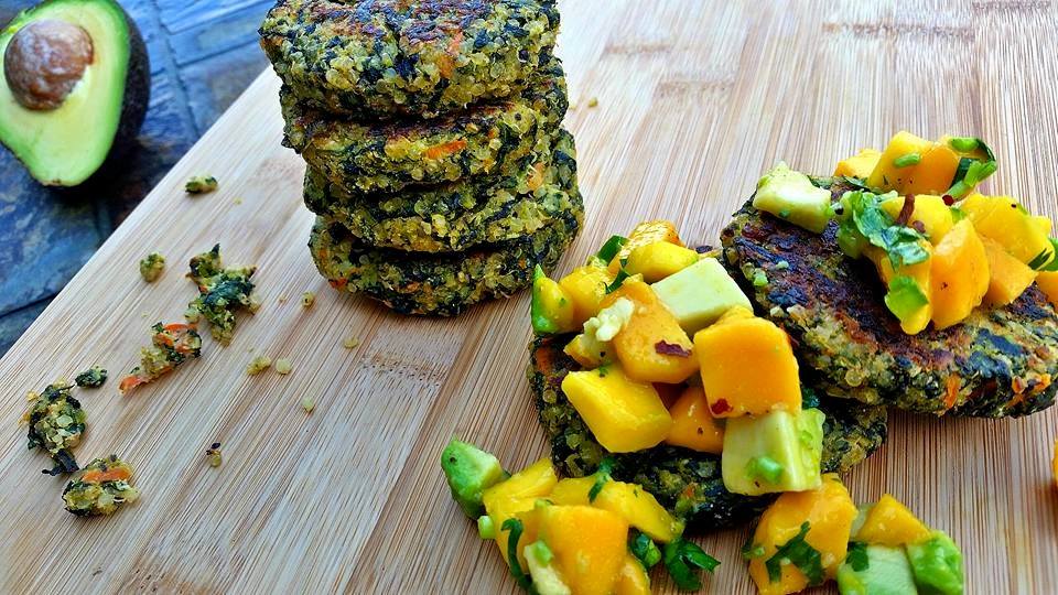 The recipe that I have brought to you today – Quinoa spinach cakes – is a perfect protein and fiber powerhouse. I topped these cakes with avocado mango salsa to further enhance the flavor profile of this dish.